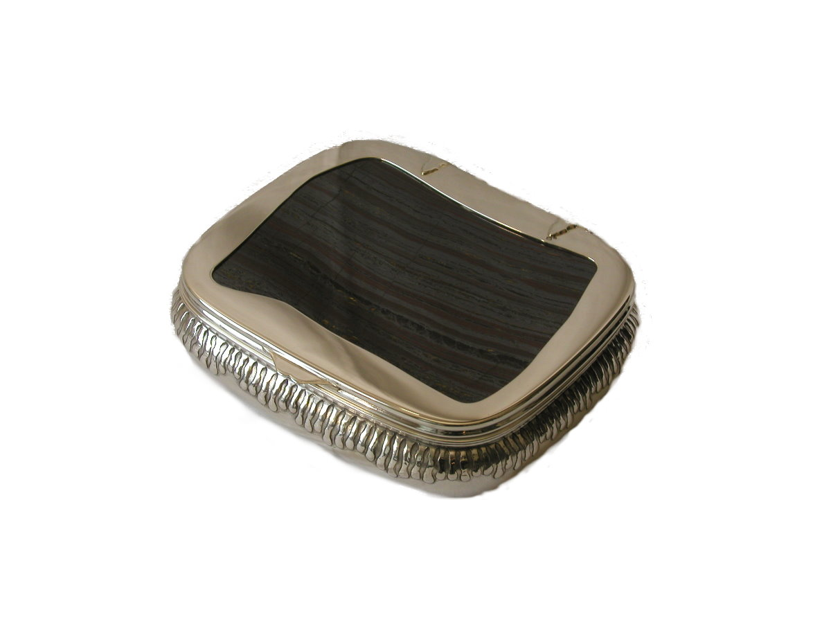 Charuteira Charuteira em prata 925% polida e cinzelada, tampas em ferro tigre REF: CXA067 Ver também: Decoração & Acessórios << voltar à lista